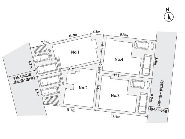 | 駐車場 | 2台 | 道路の幅員 | 4号棟:東4.5m /2号棟:西6.4m /1号棟:西6.4m |