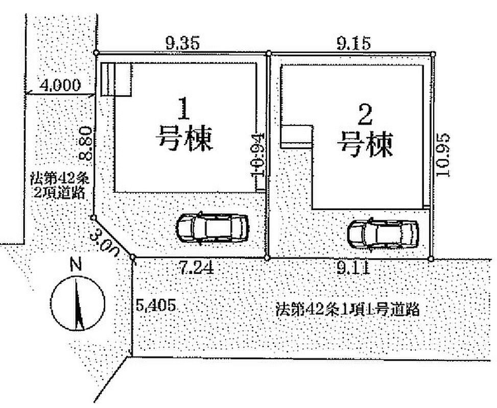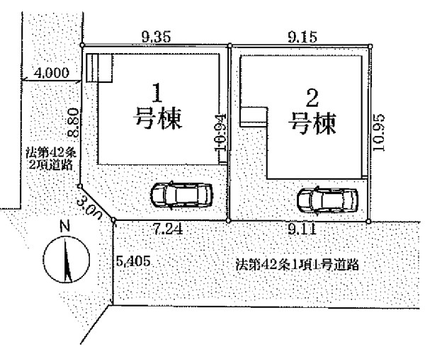 | 駐車場 | 1台 | 道路の幅員 | 2号棟:南5m /1号棟:南5m 西4m |