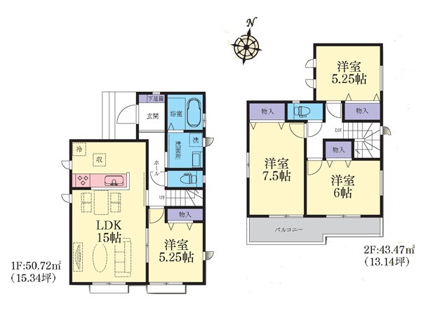 I号棟 間取り 4LDK 価格 3690万円 建物面積 93.97m2 土地面積 101.34m2 -