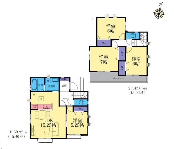 O号棟 間取り 4LDK 価格 3890万円 建物面積 93.98m2 土地面積 102.14m2 -