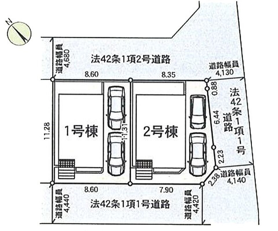 | 駐車場 | 2台 | 道路の幅員 | 1号棟:北東4.6m 南西4.4m /2号棟:北東4.6m 南西4.4m 東4.1m |