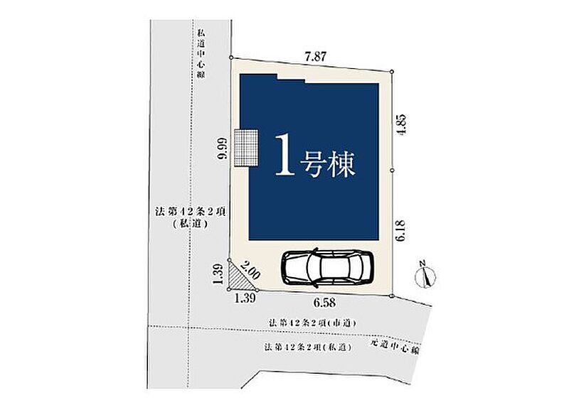 | 駐車場 | 1台 | 道路の幅員 | :南3.3m 西2m |