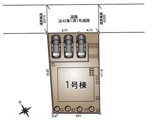 | 駐車場 | 3台 | 道路の幅員 | :北6m |