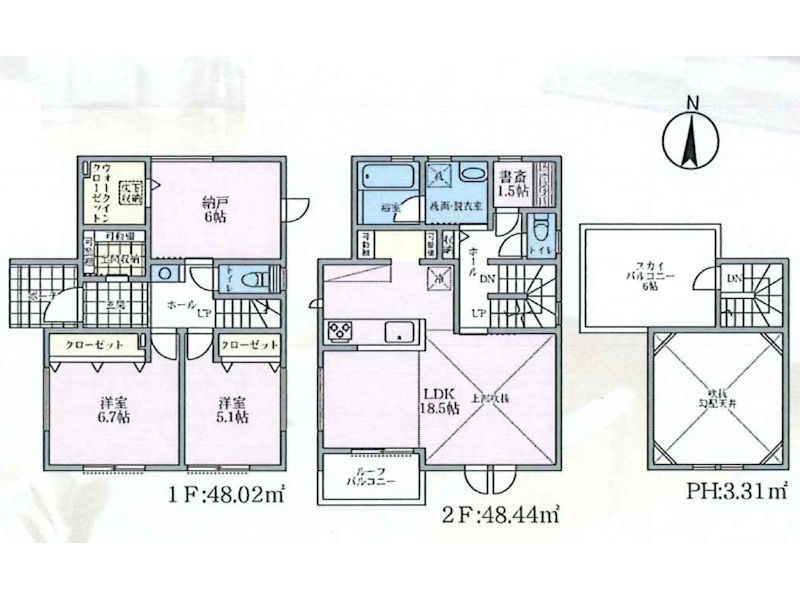 6号棟 間取り 1LDK+2S 価格 5480万円 建物面積 96.46m2 土地面積 102.56m2 -