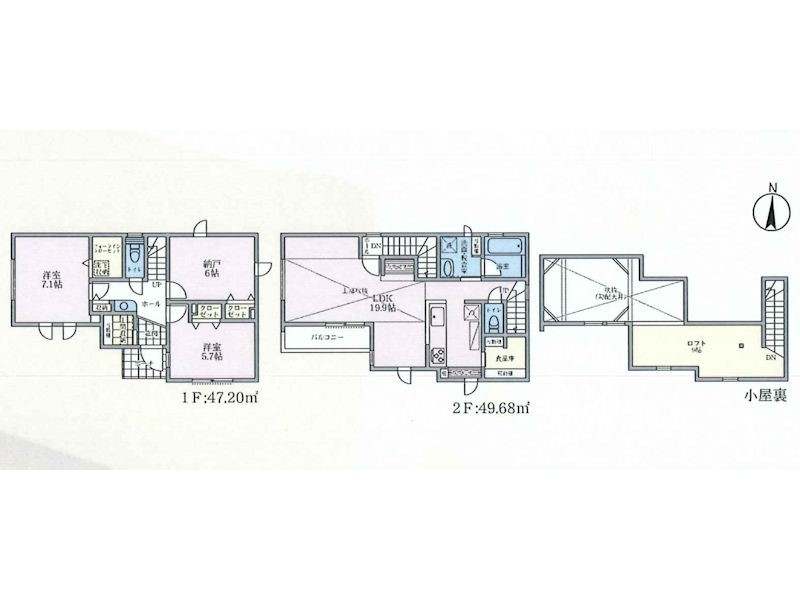 7号棟 間取り 1LDK+2S 価格 5480万円 建物面積 91.49m2 土地面積 101.64m2 -