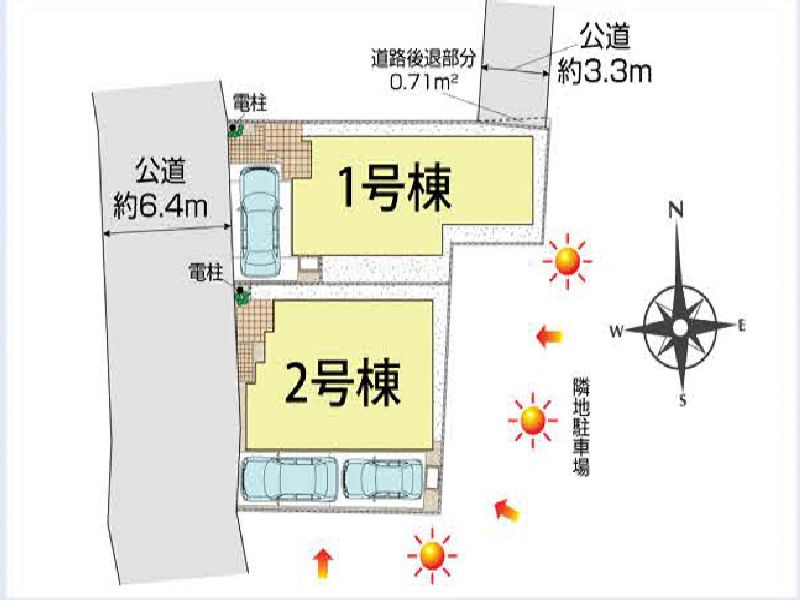 | 駐車場 | 1台 ~ 2台 | 道路の幅員 | 1号棟:西6.4m /2号棟:西6.4m |