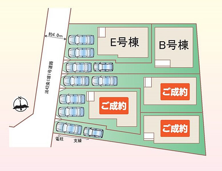 | 駐車場 | 2台 | 道路の幅員 | E号棟:西4m /B号棟:西4m |