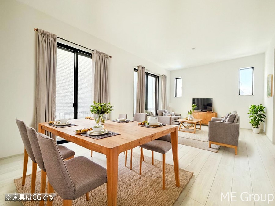 - ※完成予想図やCG合成画像は、門塀・植栽・庭・外観等、実際とは多少異なる場合があります。