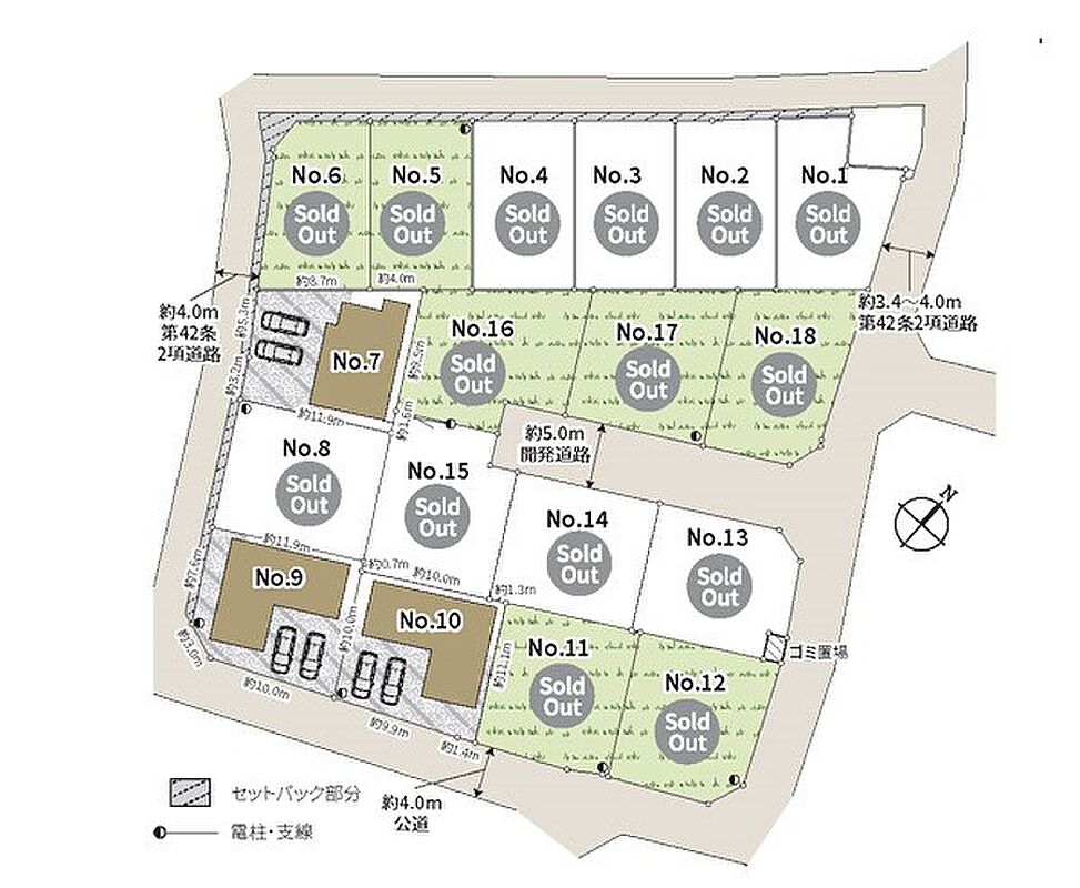 | 駐車場 | 2台 | 道路の幅員 | 7号棟:南西4m /10号棟:南東4m /9号棟:南西4m 南東4m |