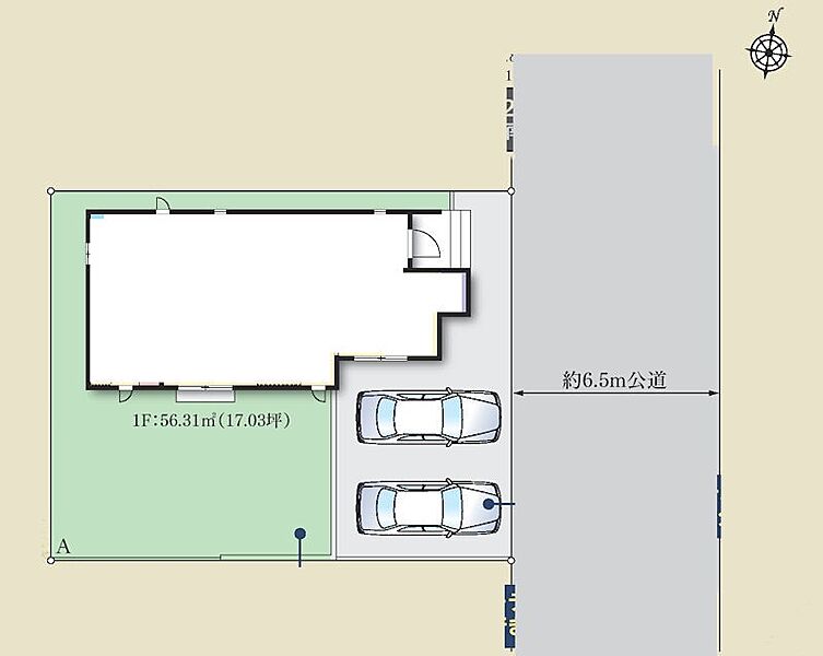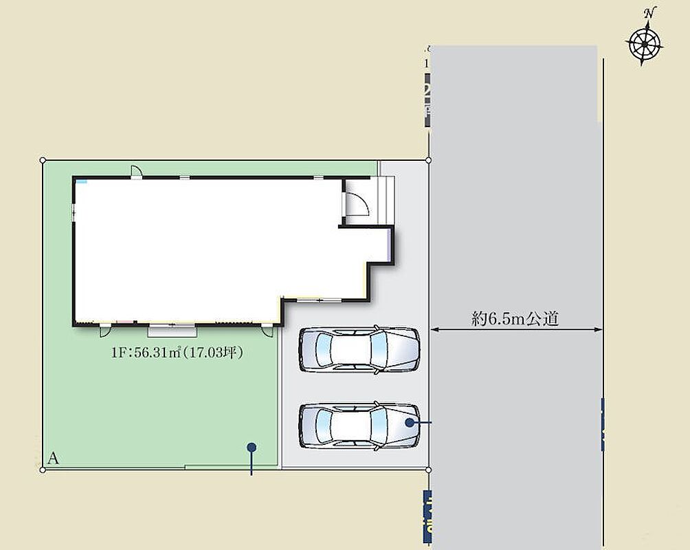 | 駐車場 | 2台 | 道路の幅員 | A号棟:東6.5m |