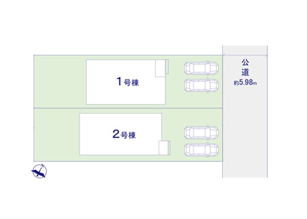 | 駐車場 | 2台 | 道路の幅員 | 2号棟:東5.9m |