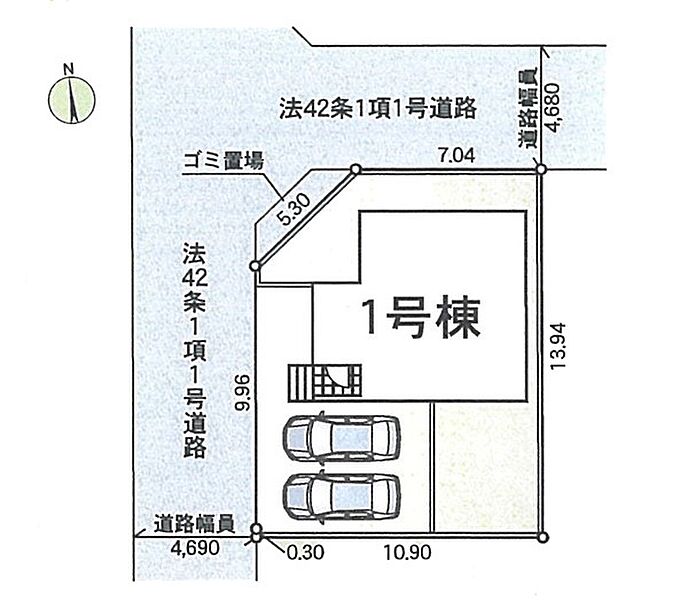 | 駐車場 | 2台 | 道路の幅員 | :北4.6m 西4.6m |