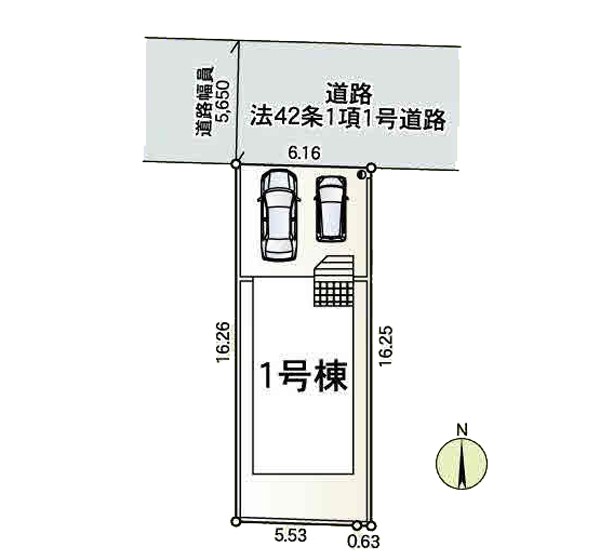 | 駐車場 | 2台 | 道路の幅員 | 1号棟:北5.6m |