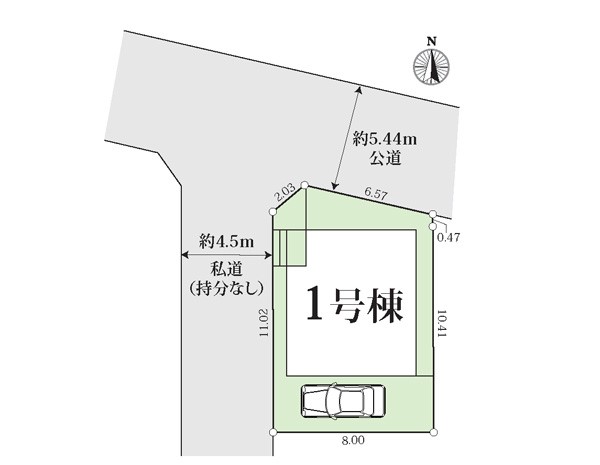 | 駐車場 | 1台 | 道路の幅員 | :北5.4m 西4.5m |