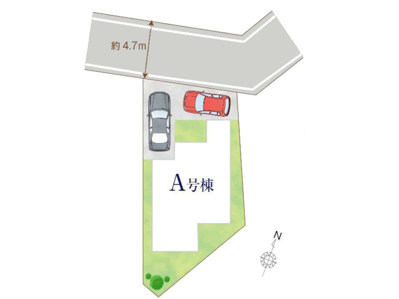 | 駐車場 | 2台 | 道路の幅員 | :北西4.7m |