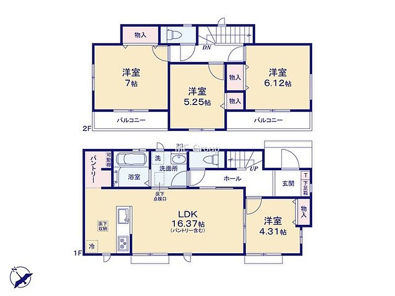 F号棟 間取り 4LDK 価格 4490万円 建物面積 94.39m2 土地面積 120.17m2 -