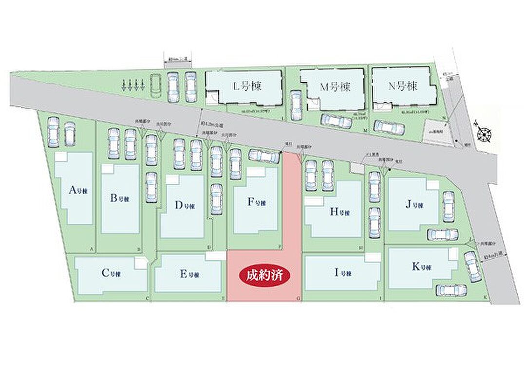 | 駐車場 | 3台 | 道路の幅員 | B号棟:北東4.3m /N号棟:南西4.3m 南東3m /K号棟:南東4m /J号棟:北東4.4m 南東4m /A号棟:北東4.3m /E号棟:北東4.3m /M号棟:南西4.3m …他 |