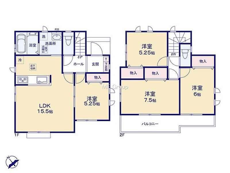 F号棟 間取り 4LDK 価格 4490万円 建物面積 94.39m2 土地面積 120.17m2 -