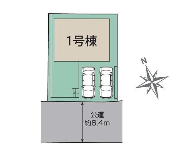 | 駐車場 | 2台 | 道路の幅員 | 1号棟:南6.4m |