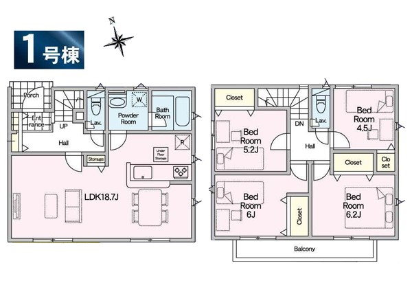 | 駐車場 | 1台 | 道路の幅員 | 1号棟:北5m |