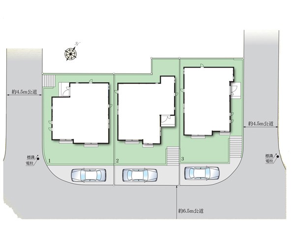 | 駐車場 | 1台 | 道路の幅員 | 1号棟:南東6.5m 南西4.5m |