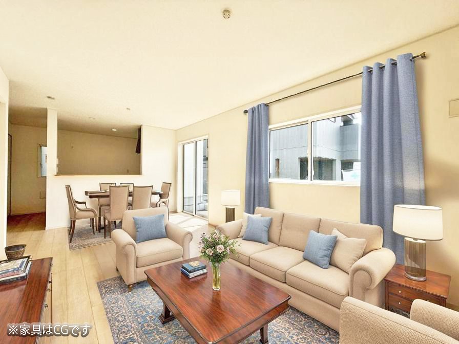 - ※完成予想図やCG合成画像は、門塀・植栽・庭・外観等、実際とは多少異なる場合があります。