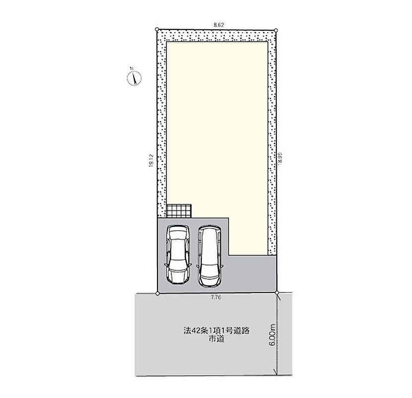 | 駐車場 | 2台 | 道路の幅員 | 1号棟:南西6m |