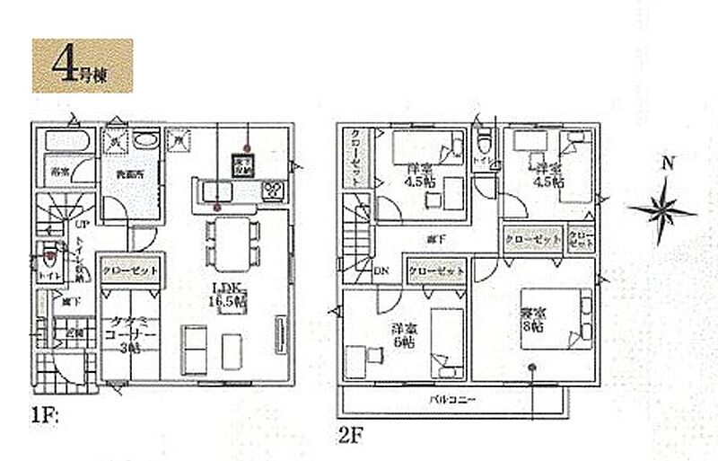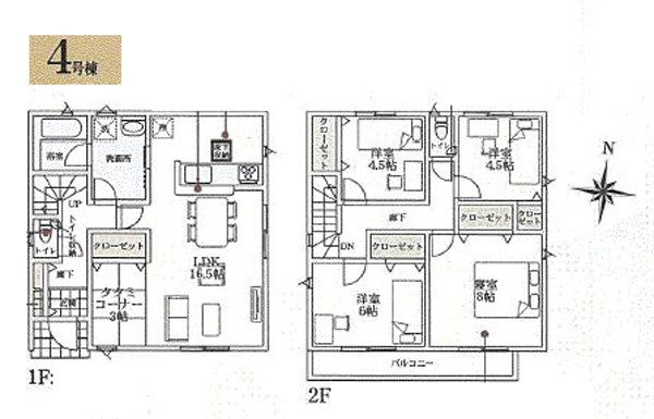 4号棟 間取り 4LDK 価格 2580万円 建物面積 102.06m2 土地面積 134.38m2 -
