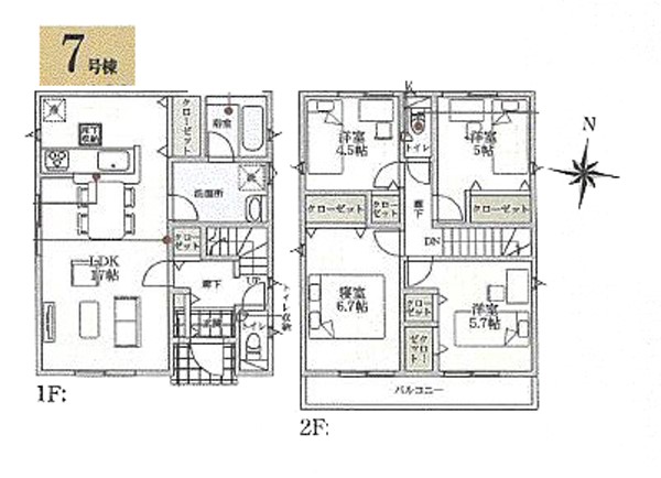 7号棟 間取り 4LDK 価格 2380万円 建物面積 94.76m2 土地面積 160.01m2
