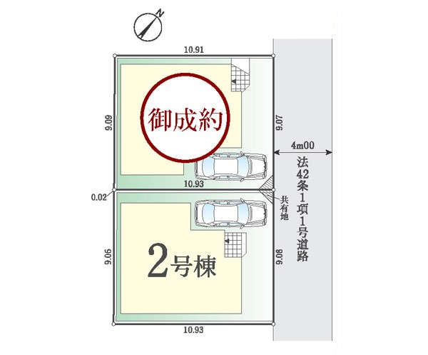 | 駐車場 | 1台 | 道路の幅員 | 2号棟:北東4m |
