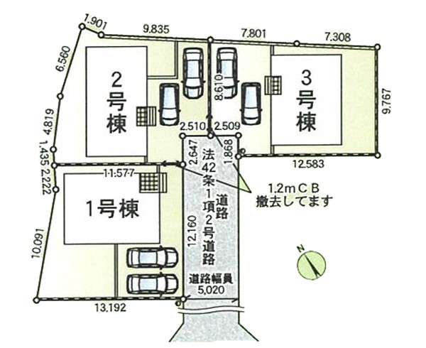 | 駐車場 | 2台 | 道路の幅員 | 2号棟:南5m |