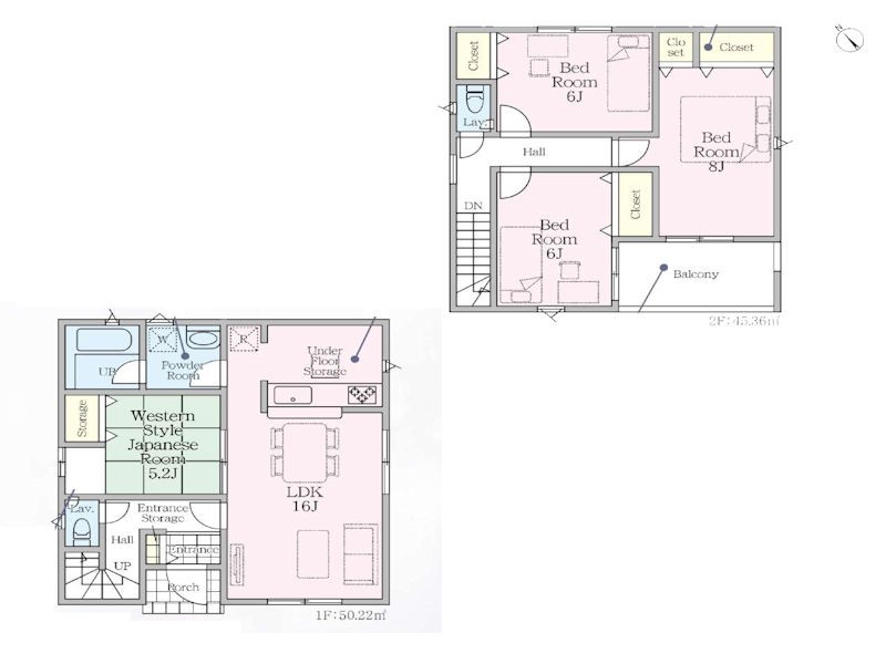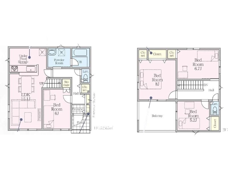 | 建物面積 | 95.58m2~98.01m2 | 土地面積 | 195.66m2~195.91m2 |