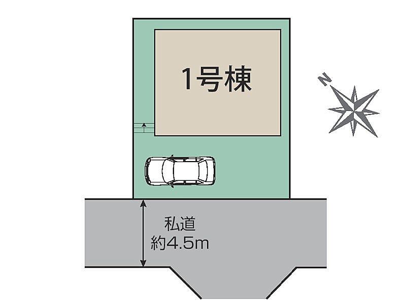 | 駐車場 | 1台 | 道路の幅員 | 1号棟:南西4.5m |