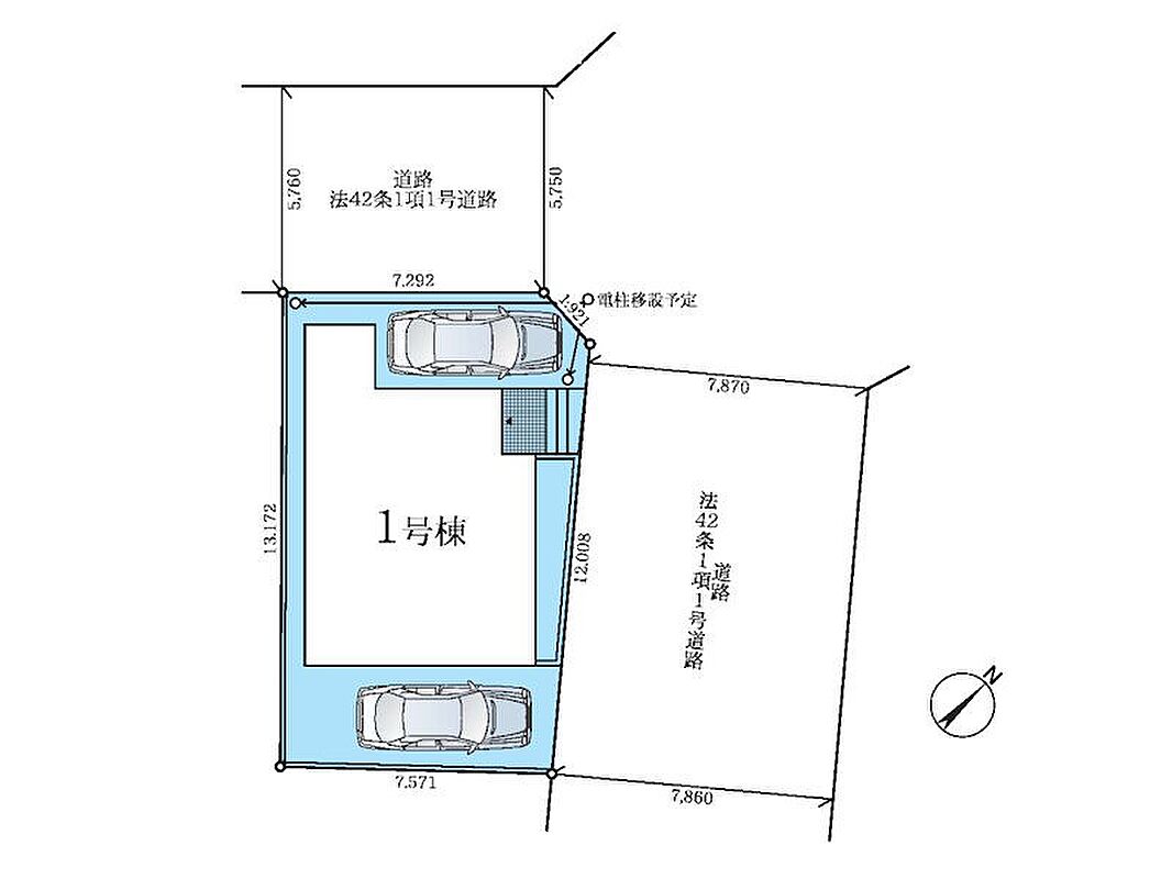 | 駐車場 | 2台 | 道路の幅員 | 1号棟:北東7.8m 北西5.7m |
