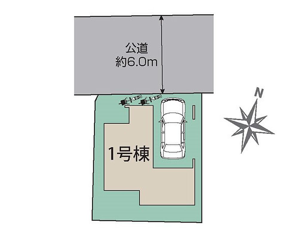 | 駐車場 | 15台 | 道路の幅員 | 1号棟:北6m |