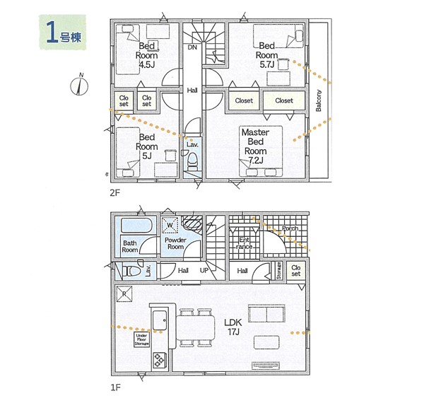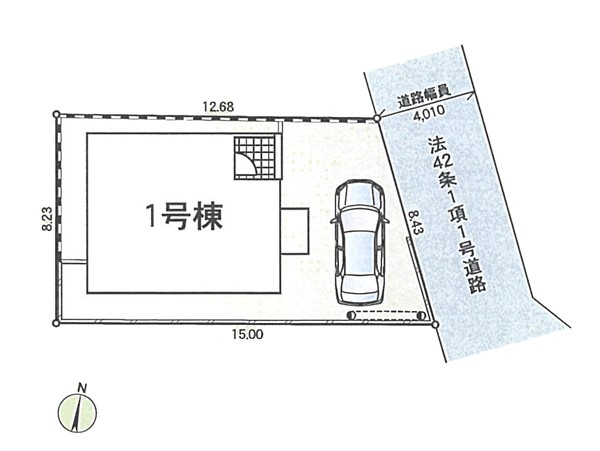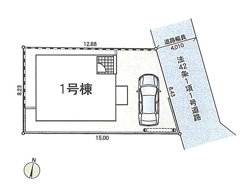 | 駐車場 | 1台 | 道路の幅員 | 1号棟:東4m |