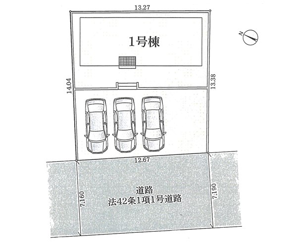 | 駐車場 | 3台 | 道路の幅員 | 1号棟:西7.1m |