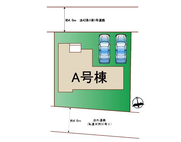 | 駐車場 | 2台 | 道路の幅員 | :北4m |