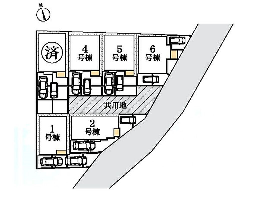 | 駐車場 | 2台 | 道路の幅員 | 4号棟:南東6m /2号棟:南東6m /6号棟:南東6m /5号棟:南東6m /1号棟:南東6m |