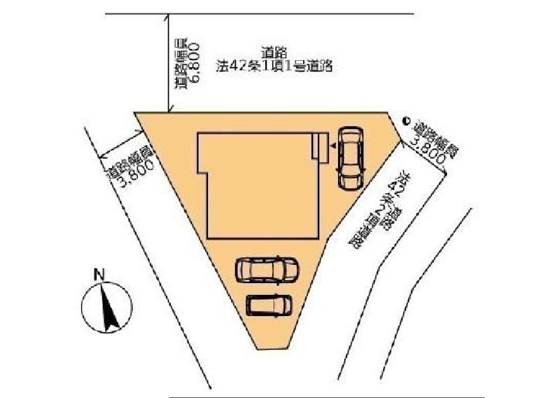 | 駐車場 | 3台 | 道路の幅員 | 1号棟:北6.8m 東3.8m 西3.8m |