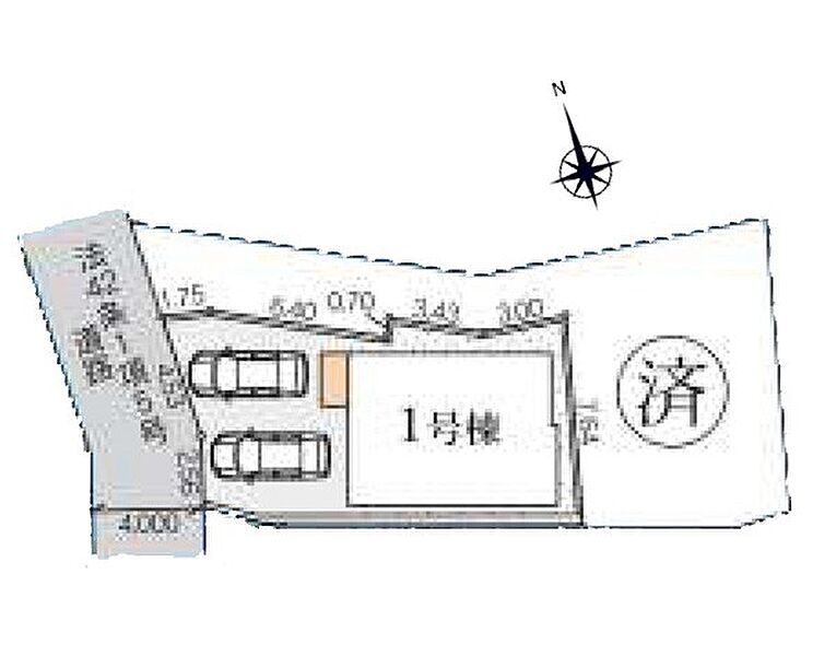 | 駐車場 | 2台 | 道路の幅員 | 1号棟:西4m |