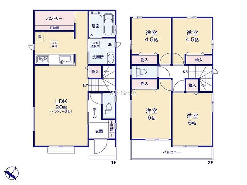 E号棟 間取り 4LDK 価格 4290万円 建物面積 94.8m2 土地面積 118.07m2 -
