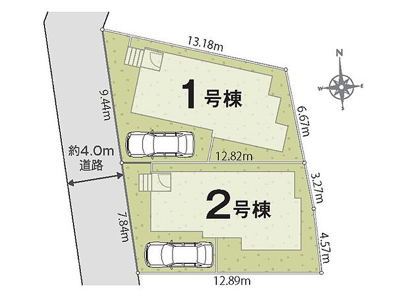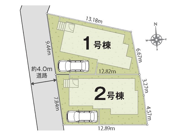 | 駐車場 | 1台 | 道路の幅員 | 1号棟:西4m /2号棟:西4m |