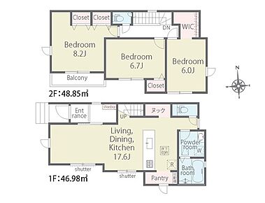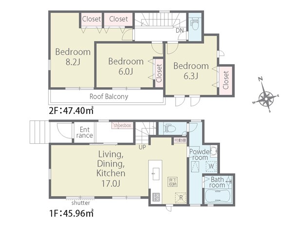 | 建物面積 | 93.35m2~95.84m2 | 土地面積 | 100.25m2~100.34m2 |