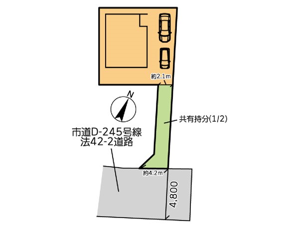 | 駐車場 | 2台 | 道路の幅員 | :南東4.8m |