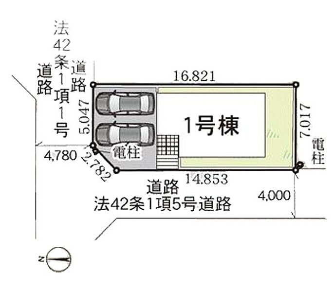 | 駐車場 | 2台 | 道路の幅員 | :北4.7m 西4m |