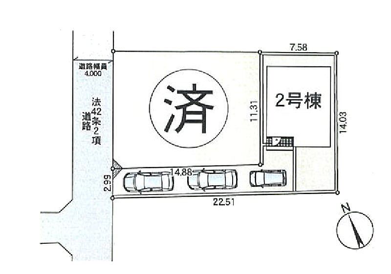 | 駐車場 | 2台 | 道路の幅員 | 2号棟:西4m |