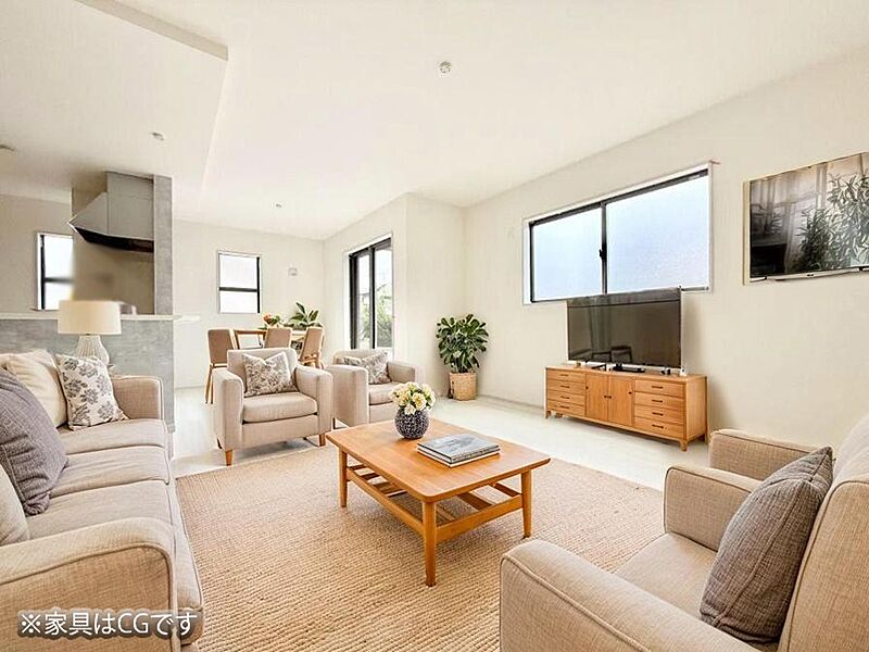 - ※完成予想図やCG合成画像は、門塀・植栽・庭・外観等、実際とは多少異なる場合があります。