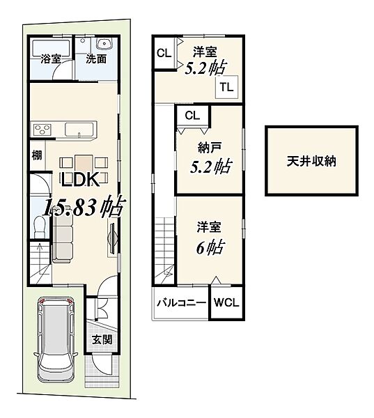 | 建物面積 | 76.25m2 | 土地面積 | 64.50m2(19.51坪) |