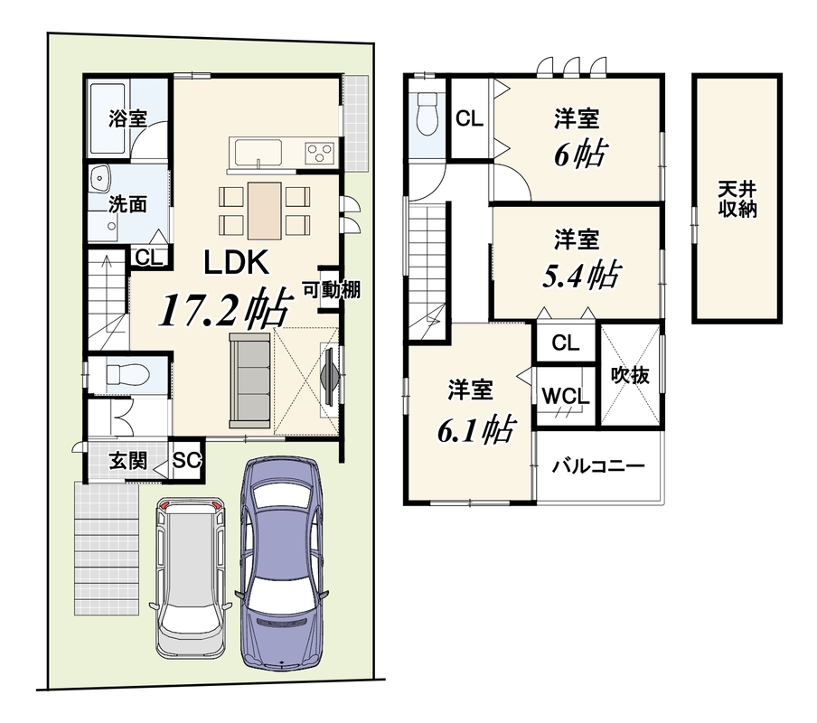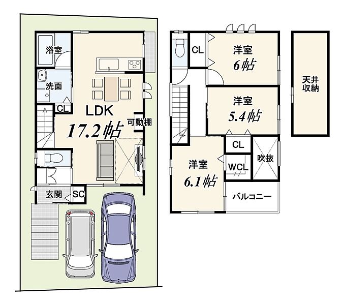 - ※完成予想図やCG合成画像は、門塀・植栽・庭・外観等、実際とは多少異なる場合があります。